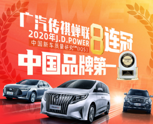 广汽传祺连续八年荣获J.D. Power中国新车质量研究(IQS)主流车市场中国品牌第一